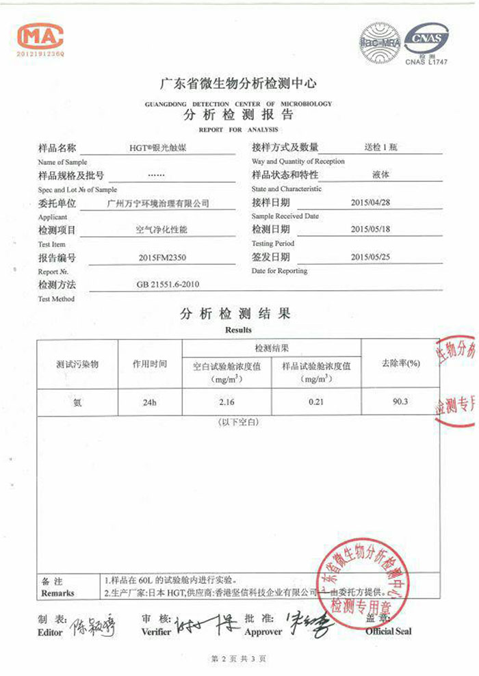 廣州萬寧環(huán)境治理有限公司前身是廣州市匡琦貿(mào)易有限公司,成立于2002年,屬香港堅信科技企業(yè)公司中國地區(qū)營運總部,負責環(huán)境治理系列產(chǎn)品的進口、技術(shù)指導、工程施工及招商工作。2015年日本總部成功開發(fā)出HGT超級銀光觸媒,該產(chǎn)品利用飛米技術(shù)將二氧化鈦和銀離子結(jié)合,產(chǎn)生強大的氫氧自由基,能在一分鐘內(nèi)凈化空氣。我公司作為HGT品牌中國營運總部,獨家銷售最新一代頂尖技術(shù)光觸媒產(chǎn)品,新產(chǎn)品徹底去除甲醛、強效殺...